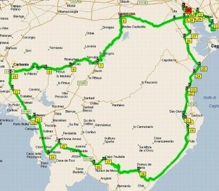 Dopo aver rimandato ad oggi il tour, causa avverse condimeteo, appuntamento ore 08:45 al semaforo (ex-K2), per la partenza del . Causa impegni, Giò e Tore non possono intervenire. A questo giro mi sono modernizzato, abbandonando la cartina ed inserendo sul navigatore il percorso con i vari puntelli. Il sole, malgrado il maestrale, si fa sentire. Decidiamo di fare una deviazione per permettere a Ignazio (al suo primo giro) di poter rifornire, lungo la S.S. 130 infatti non abbiamo trovato distributori aperti. Da li decidiamo di proseguire verso Fluminimaggiore per deviare poi verso Buggerru. Lungo il tragitto veniamo raggiunti da una ventina di motociclisti del Piemonte, che ritroviamo poi a fare tappa all'incrocio di Buggerru. Arriviamo sulla parte alta dove si domina una veduta sul , dove facciamo tappa e qualche foto. Il maestrale, che quando siamo partiti si sentiva appena, ora rinforza e disturba il viaggio. Arrivati a Guspini, dopo il Passo Bidderdi 492 mt. s.l.m., decidiamo di tagliare per arrivare in orario a Gesturi per il pranzo. Durante il percorso Iglesias-Buggerru-Arbus, abbiamo dovuto rallentare per dar modo ad Ignazio di seguire e non forzare l'andatura per starci dietro. Dal bivio della S.S. 131 fino a Gesturi abbiamo un forte vento contrario che ci fa arrivare al ristorante alle 13:45. Qui al ristorante "Fra Nicola" troviamo Marco (il titolare) che ci accoglie e incomincia a sfamarci con degli antipasti di terra, fettuccine ai funghi porcini, (intermezzo con la visione dell'arrivo del motogp) e poi ancora pecora con cardi selvatici, verdura, il tutto inaffiato da un buon vino. Caffè, ammazzacaffè e poi dopo un saluto a Marco, via alle 15:30 di nuovo in sella verso Barumini a vedere il complesso nuragico de "". Puntiamo verso Ortacesus per vedere l'allevamento di struzzi, ma quando arriviamo sul posto scopriamo che il tutto è stato chiuso qualche tempo fa per mancanza di richieste di questo tipo di carne e uova. Puntiamo verso casa sempre accompagnati dal forte vento di maestrale, dove arriviamo alle 17:05. Piccola sosta dove visioniamo le foto e poi Ignazio e Paolo riprendono il viaggio verso Pula. Altra bellissima giornata passata in compagnia anche se il forte maestrale ha influenzato il tour. Senza ombra di dubbio molto utile e indispensabile il GPS che diventerà sicuramente un compagno di viaggio inseparabile. Peccato per le defezioni di Giò e Tore... recupereremo al prossimo che spero sia il tour della Sardegna coast to coast in due giorni, con tappa a S. Teresa di Gallura.